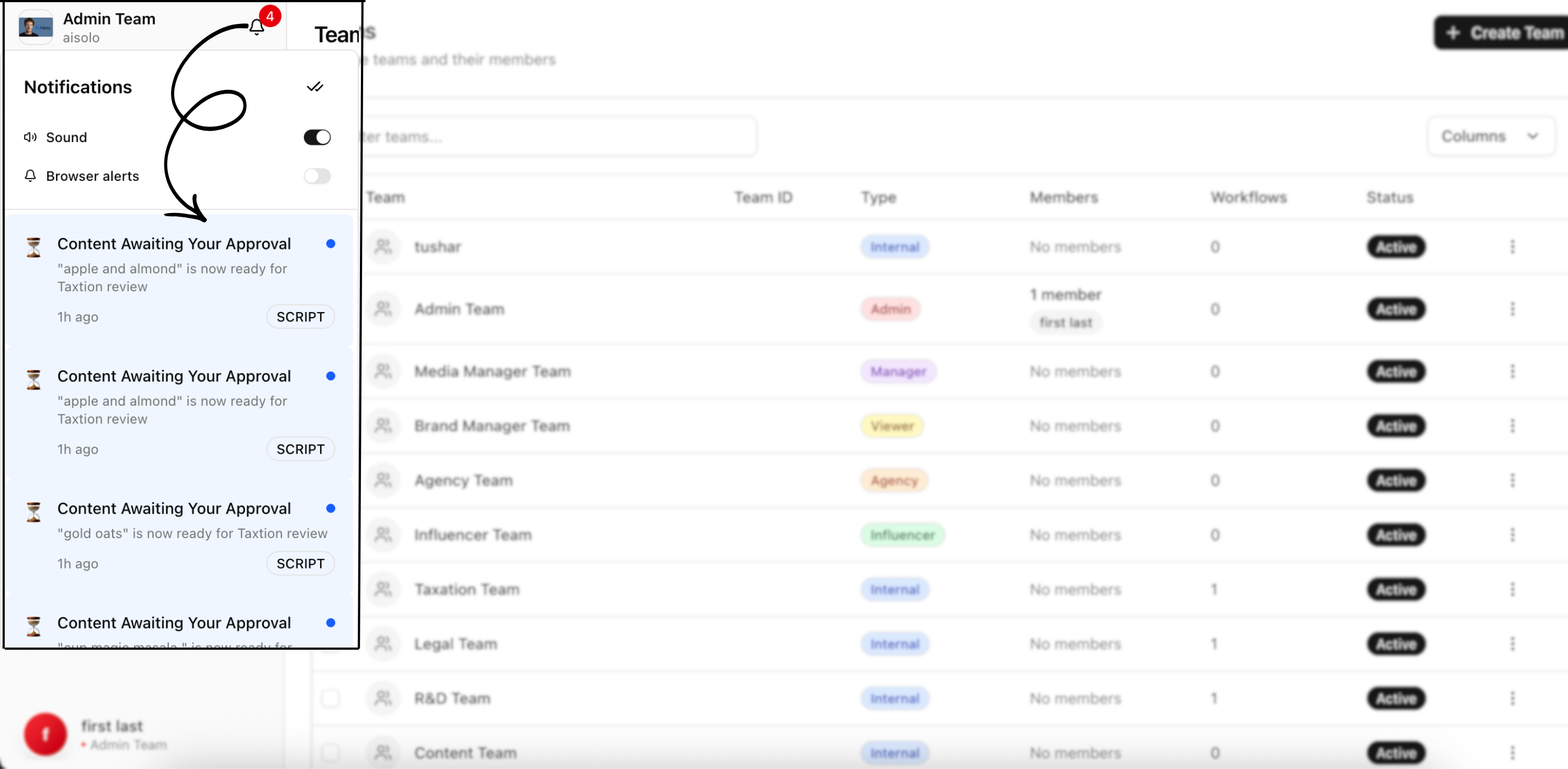- Workflow Progress: Updates on content movement through approval stages